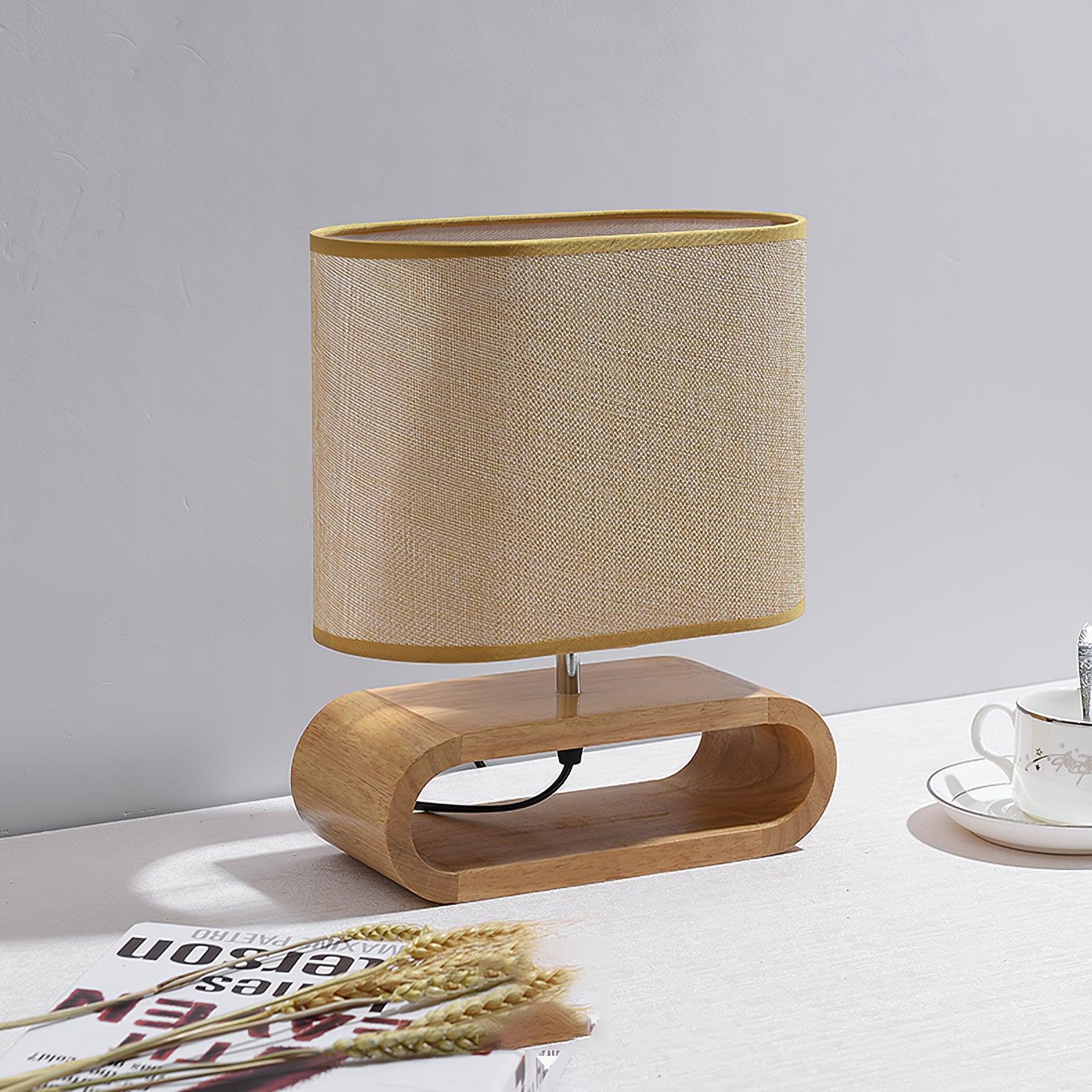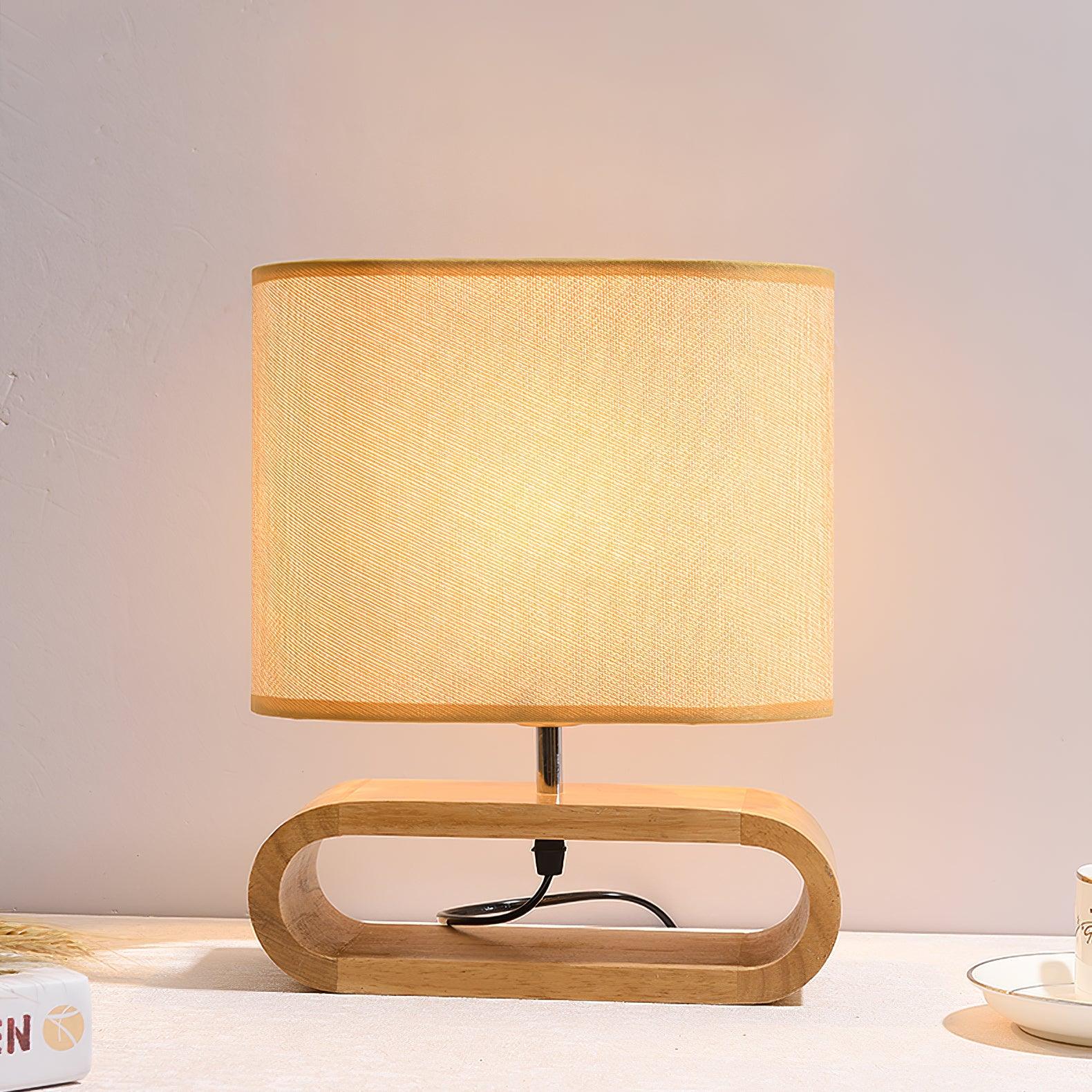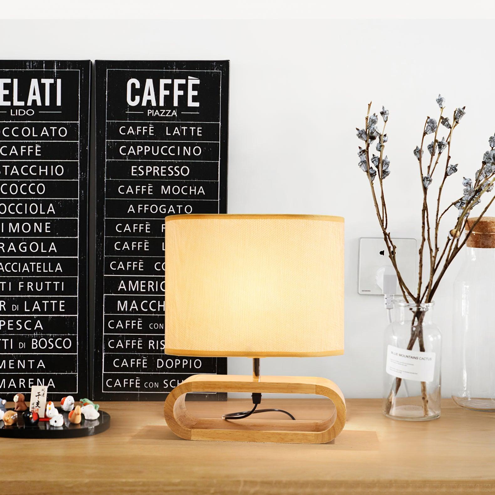 Moti Wood Table Lamp Brown Fabric LED Desk Lamp Bedroom Lighting