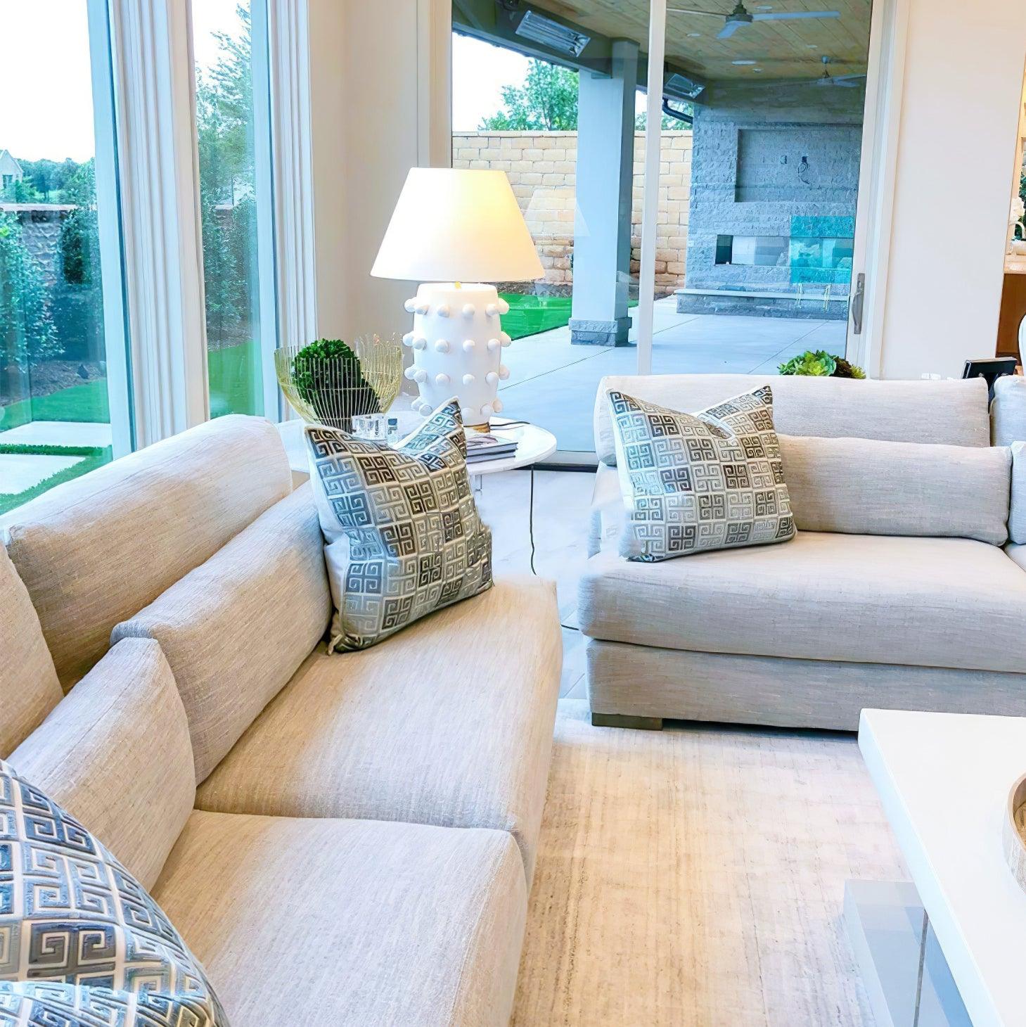 Light up your space with the Polka Dot Porcelain Table Lamp—a playful yet refined statement piece that blends tactile texture with soft, ambient illumination. The pristine white ceramic base is adorned with raised polka dots, inviting a closer look and adding visual interest as light plays across its surface. Topped with a fabric shade, this lamp combines tactile porcelain with a warm, diffused glow for a balanced, inviting atmosphere. Subtle brushed brass accents at the base and neck add a touch of luxury and warmth.