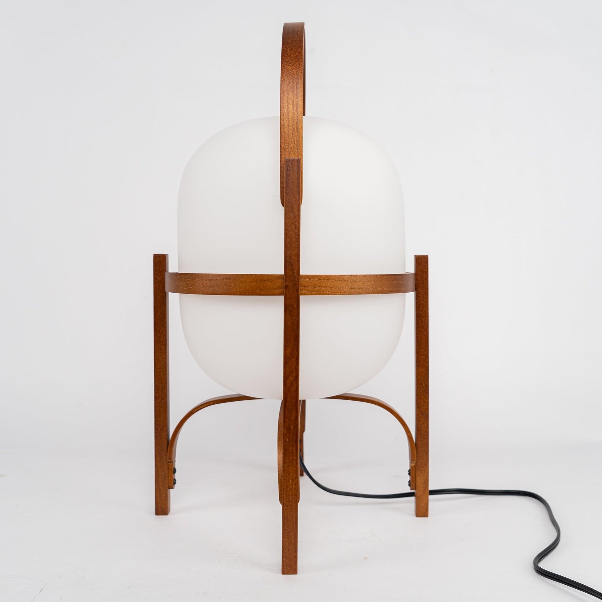 - Premium wood and glass construction with a White shade; body finishes available in Ash or Walnut.