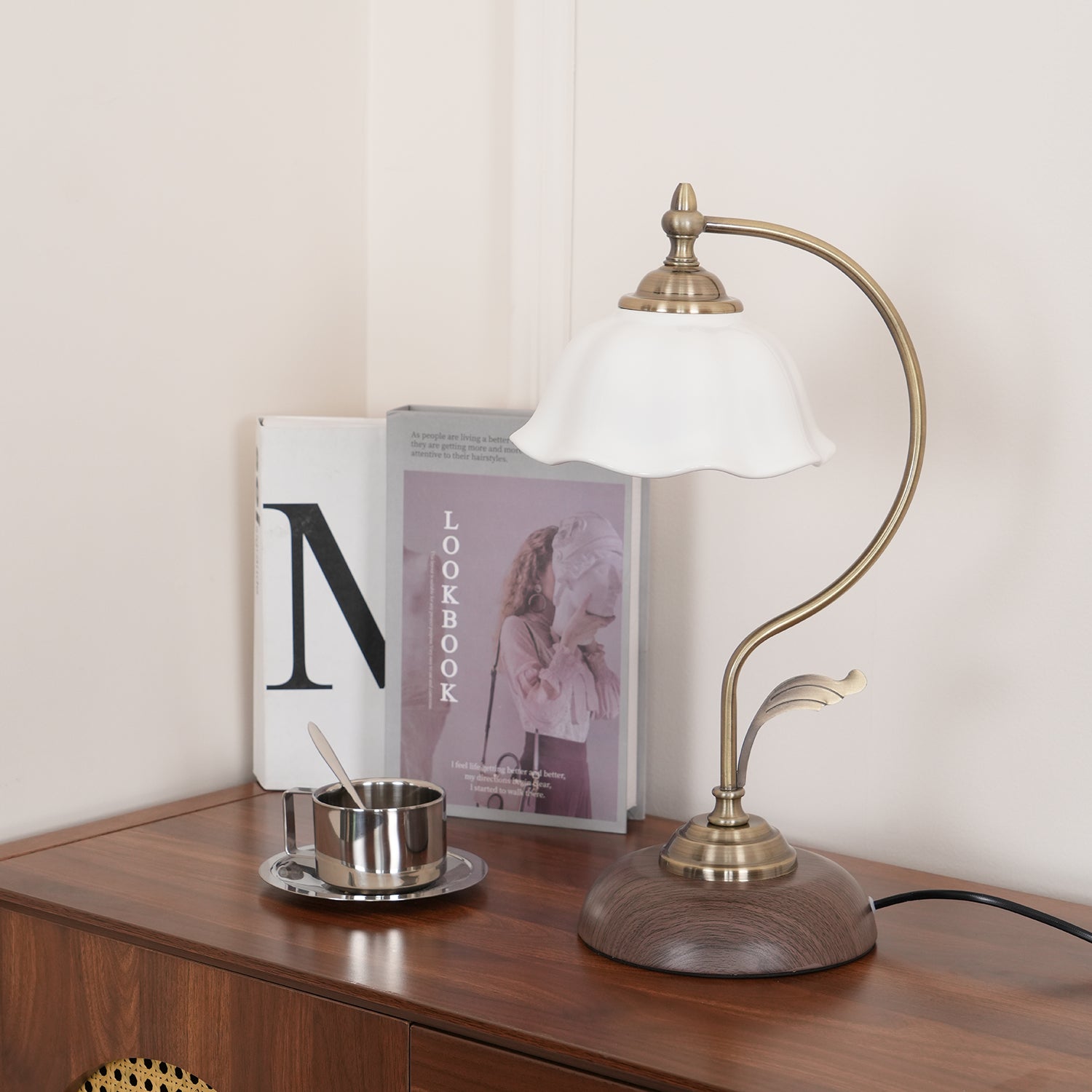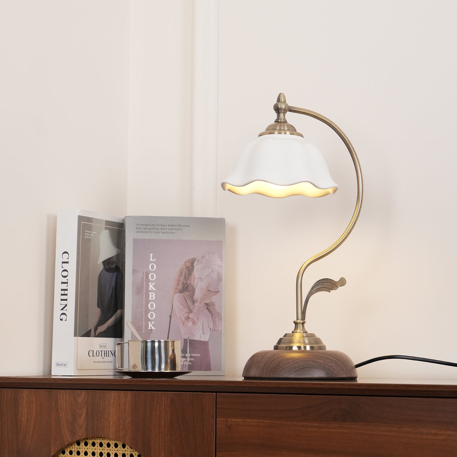 Illuminate your space with a touch of vintage charm — the Vintage Laiton Table Lamp. The white ceramic flower shade directs light with precision, making it ideal as a reading lamp, bedside lamp, or study lamp. Crafted from metal for a timeless look, it brings a refined glow to any desk or nightstand.